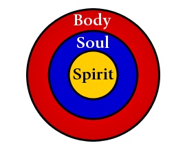 The reason for occasional overlapping of these terms is that, conceptually, just as the immaterial aspect of man is “in” the body, so the human spirit is “in” the soul. This model can be illustrated by concentric circles.